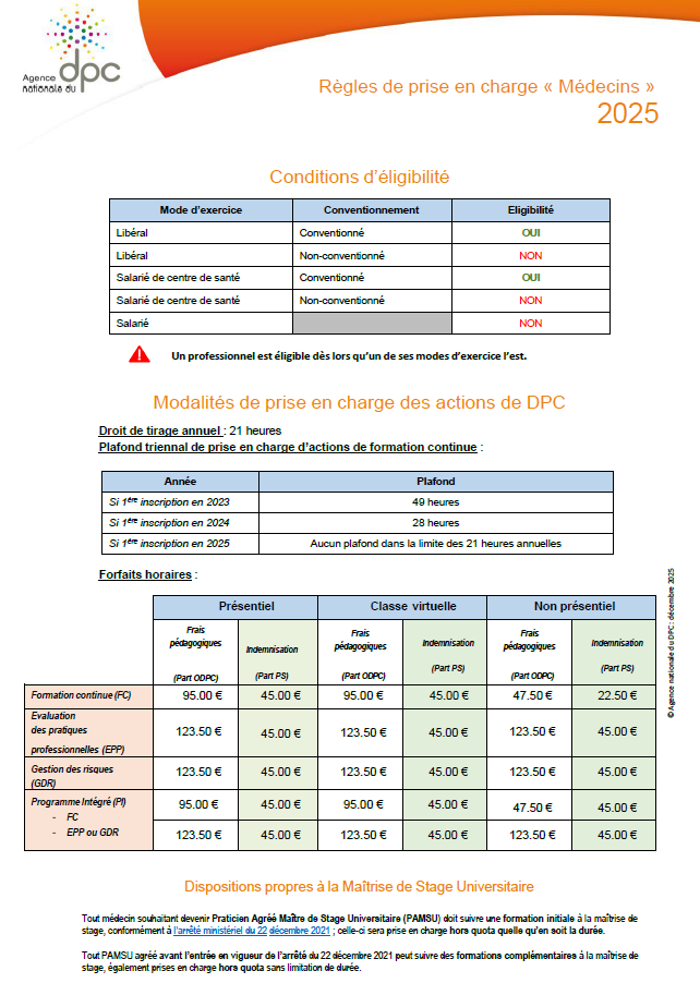 Il s'agit d'une formation présentielle se déroulant sur 2 jours validé par l'ANDPC et qui ouvre droit à une indemnisation pour perte de ressources à hauteur de 630 € dans la cadre du forfait HORS-QUOTA (Règles de prise en charge ANDPC ci-joint).